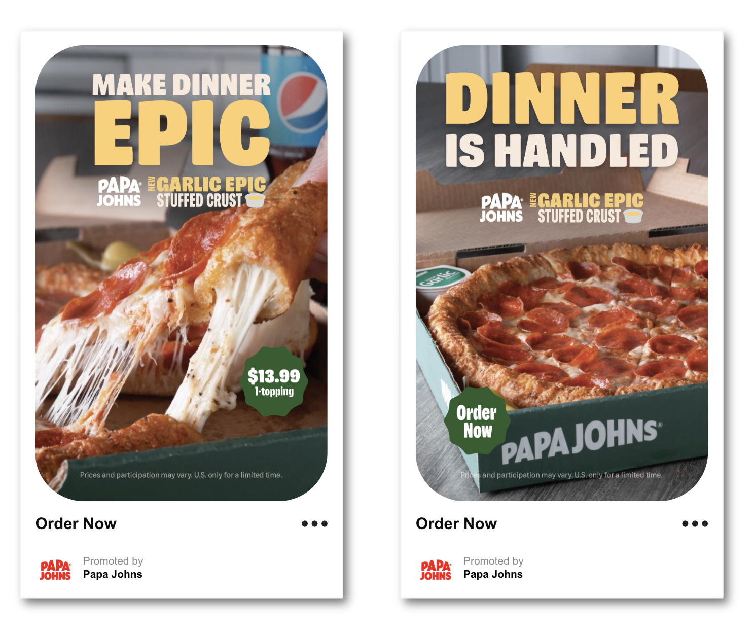 Lockup design and art direction for Papa John’s Garlic Epic Stuffed Crust pizza. Designed for TVC, web banners, and paid and organic social.