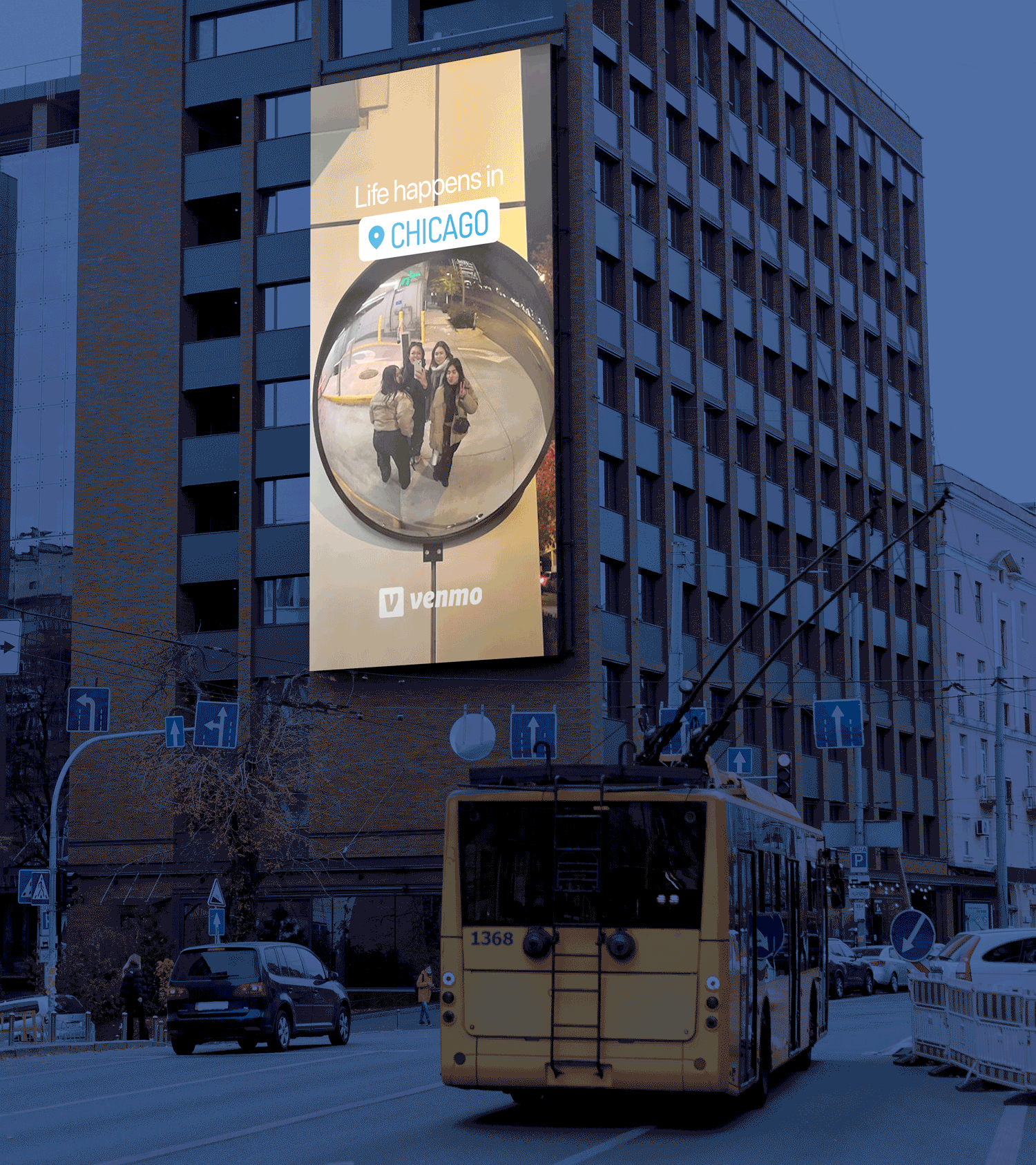 Geo-restricted billboards invite Venmo users to submit a real time photo each time they make a payment in popular areas of their city. We’ll also feature UGC photos on our social pages.